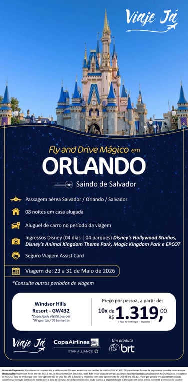 Orlando – Saindo de Salvador | Viagem de 23 a 31 de Maio de 2026