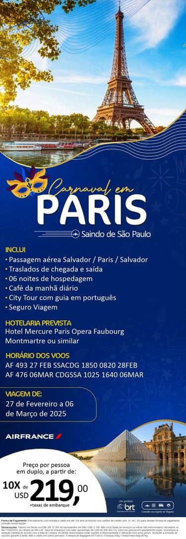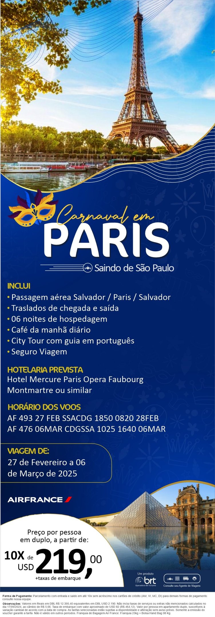 Bloqueio Exclusivo | Carnaval em Paris – Saindo de Salvador | 27 de Fevereiro a 06 de Março de 2025